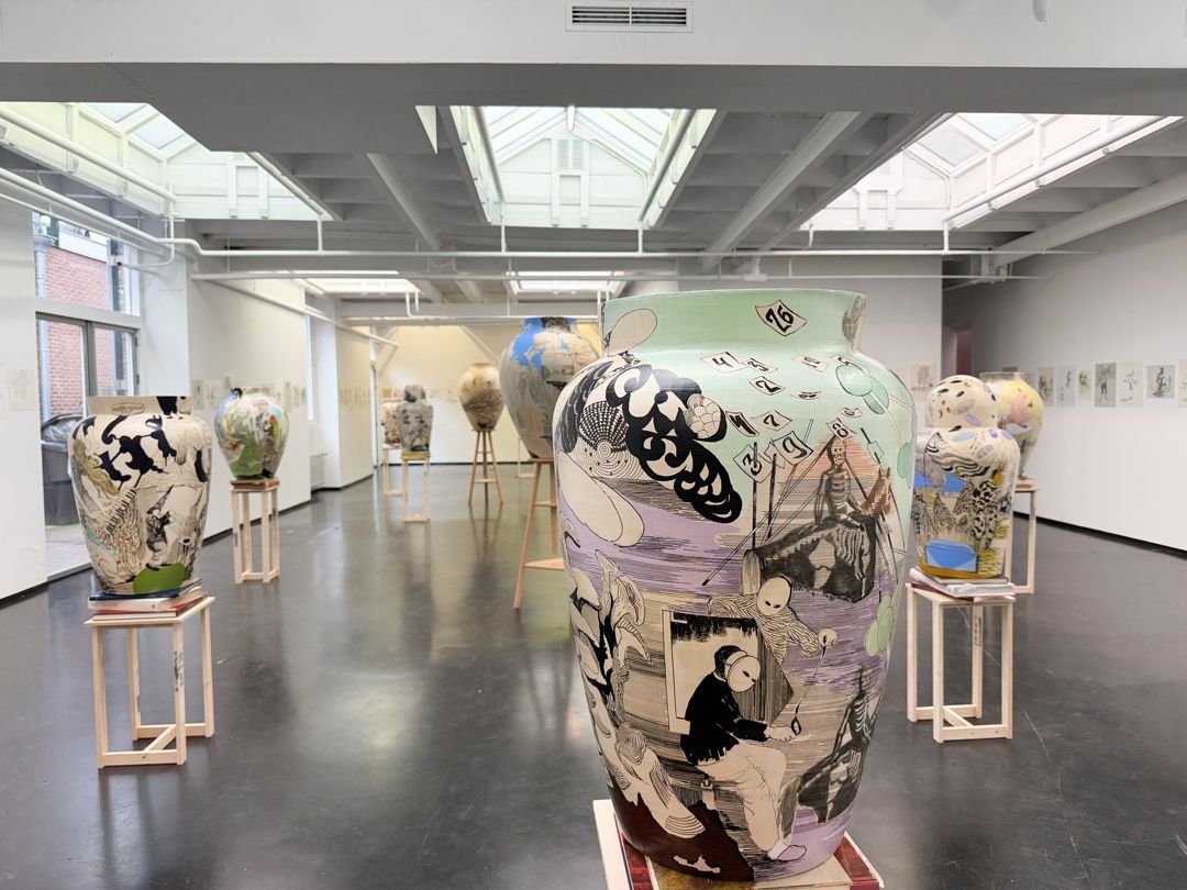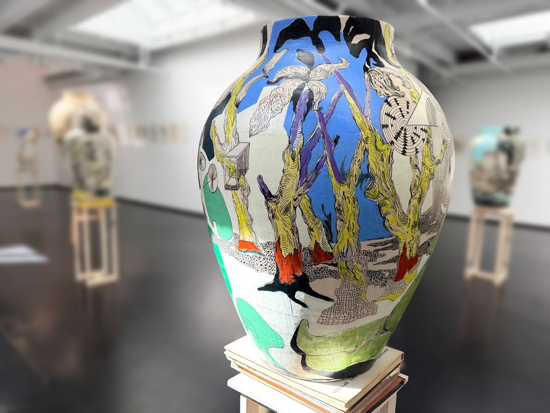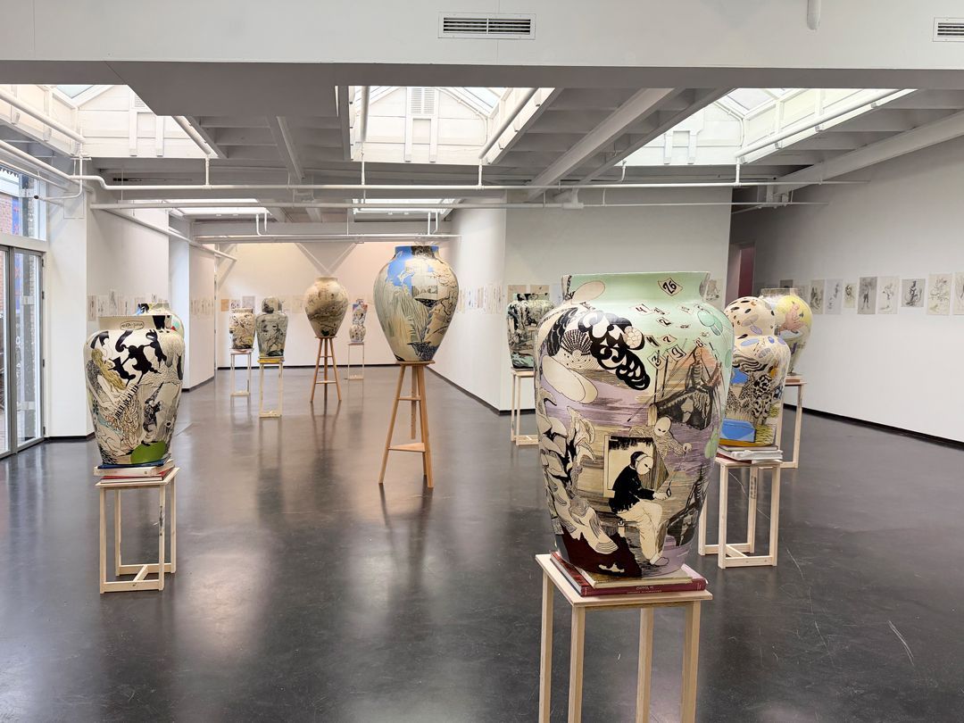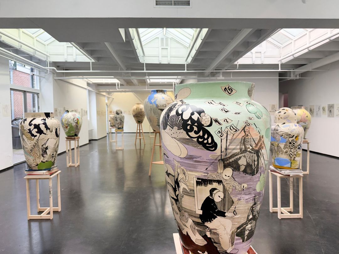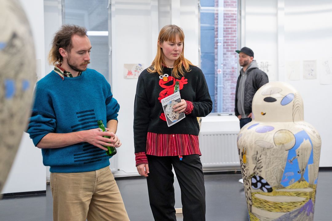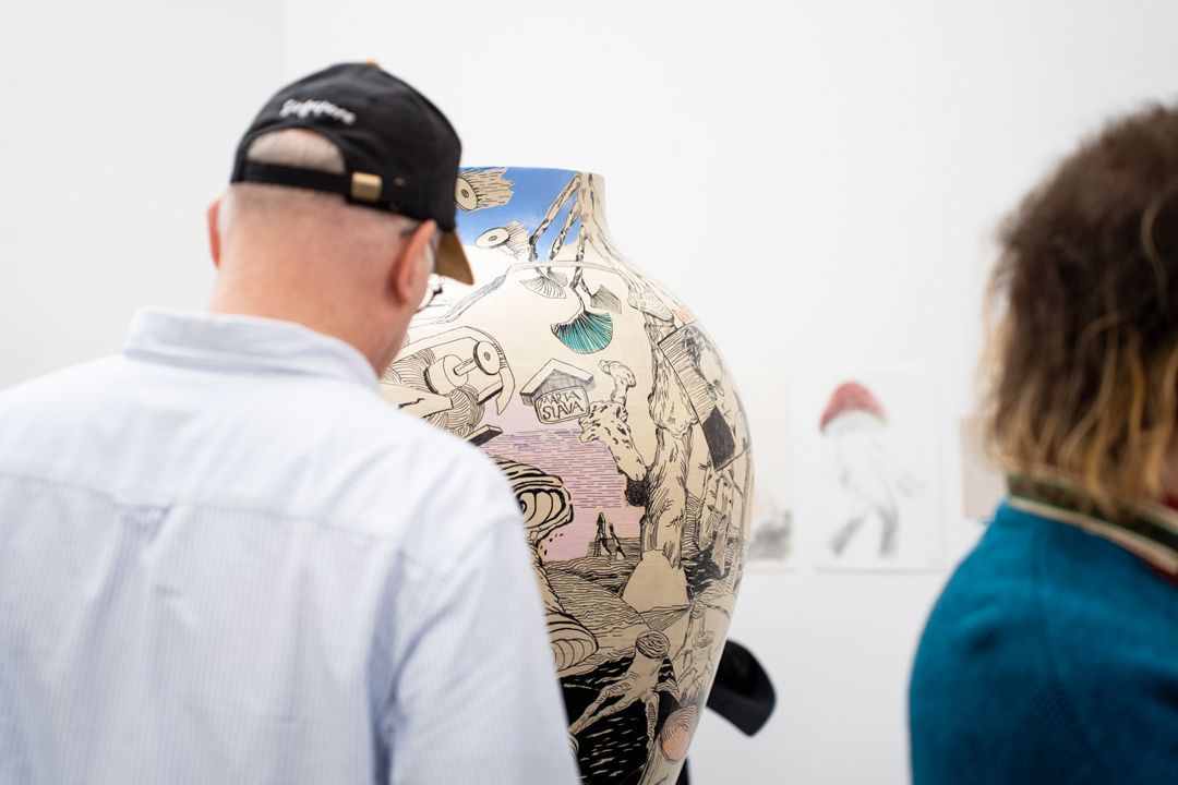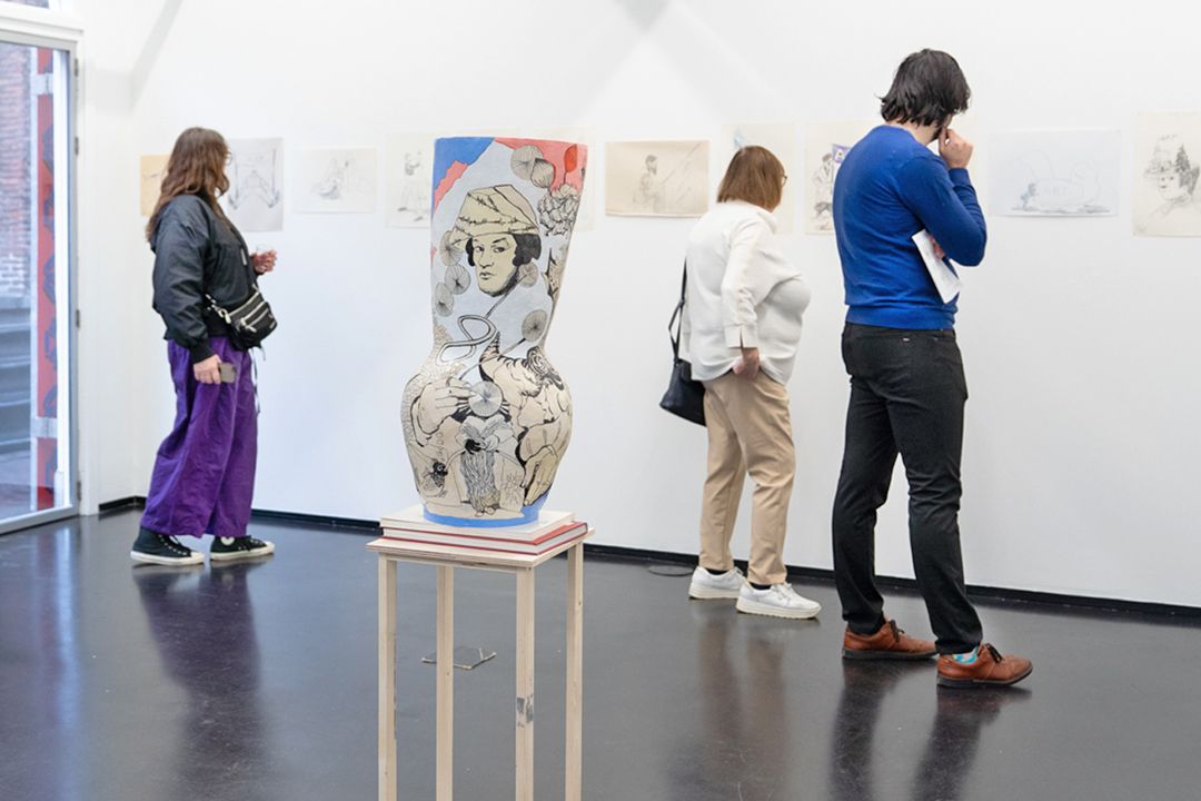 keert het kunstenaarsduo Marta & Slava terug bij 38CC. Centraal in hun nieuwe tentoonstelling staat een recente serie verhalende sculpturen, aangevuld met een selectie nooit eerder getoonde schetsen uit hun rijke archief. Samen bieden deze werken een inkijk in het maakproces en de eigenzinnige blik van het duo op de hedendaagse maatschappij. Op kleurrijke vaasvormen ontvouwen zich visuele vertellingen waarin feit en fictie in elkaar overlopen. Personages en symbolen verschijnen en verdwijnen in een doorlopend verhaal dat geen duidelijk begin of einde kent.